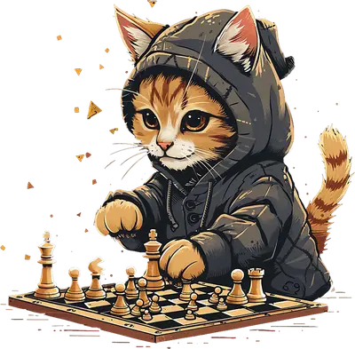 Cute Cat Playing Chess DTF Transfer | Ready to Press Design