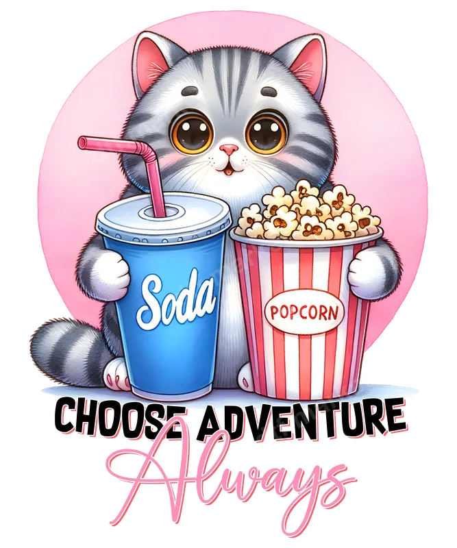 Cute Cat Popcorn Soda DTF Transfer - Choose Adventure Always