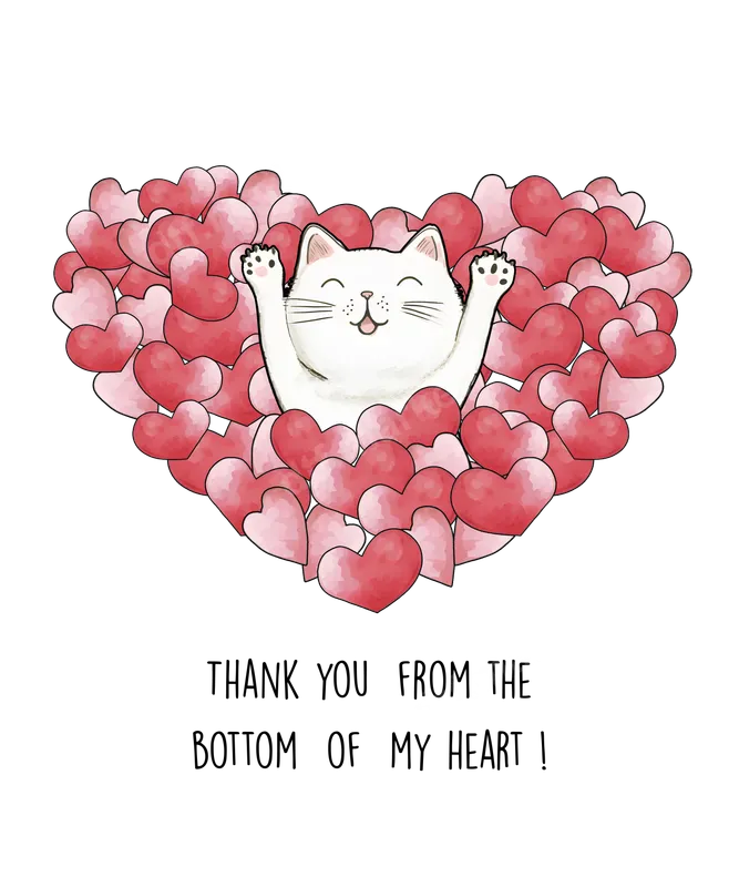 Cute Cat Thank You Hearts DTF Transfer - Grateful Pet Lover Design