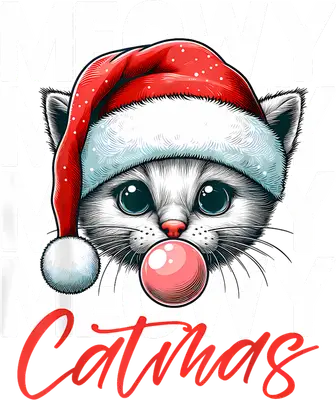 Cute Catmas DTF Transfer | Santa Hat Cat Bubblegum Design