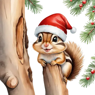 Cute Chipmunk Santa Hat Christmas DTF Transfer