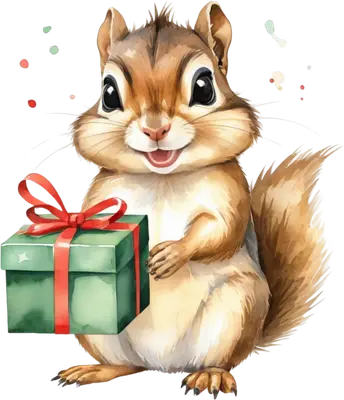 Cute Chipmunk with Gift DTF Transfer | Christmas Holiday Animal Design