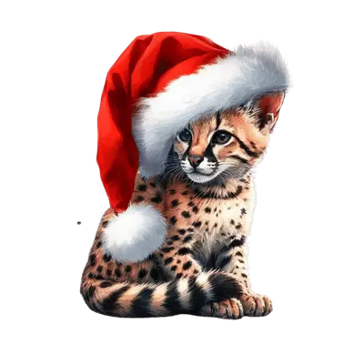 Cute Christmas Baby Serval DTF Transfer | Santa Hat Wild Cat