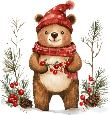 Cute Christmas Bear DTF Transfer | Winter Holly Berries