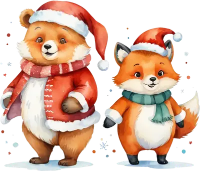 Cute Christmas Bear & Fox DTF Transfer | Holiday Animals