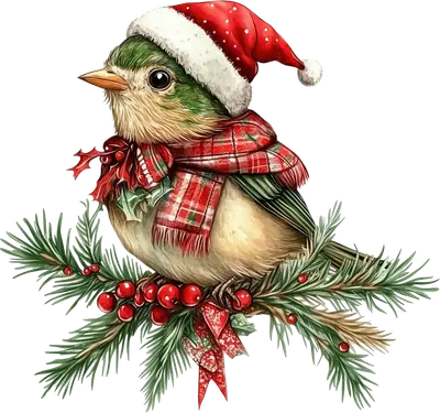 Cute Christmas Bird DTF Transfer with Santa Hat & Scarf