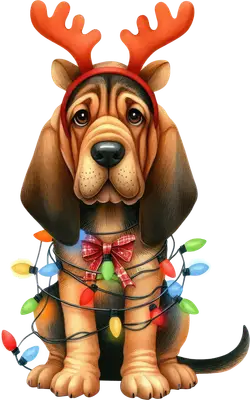 Cute Christmas Bloodhound Puppy DTF Transfer with Reindeer Antlers & Lights