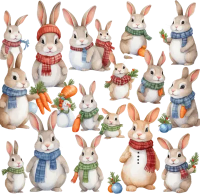 Cute Christmas Bunnies DTF Transfer | Winter Holiday Rabbits