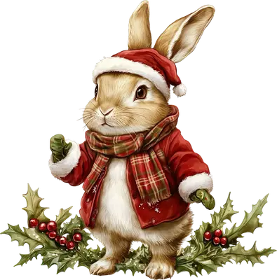 Cute Christmas Bunny DTF Transfer | Santa Hat & Plaid Scarf
