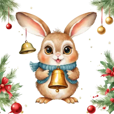 Cute Christmas Bunny with Bell DTF Transfer - Festive Rabbit Iron On Design