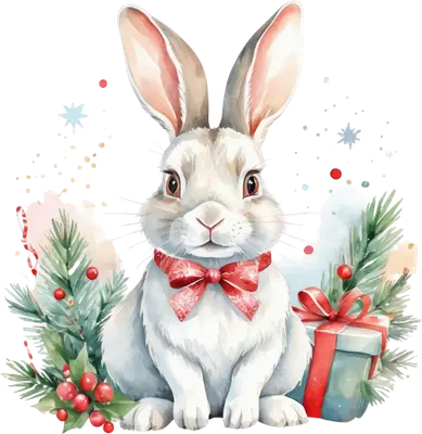 Cute Christmas Bunny with Bow & Gift DTF Transfer