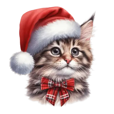 Cute Christmas Cat DTF Transfer - Kitten with Santa Hat & Plaid Bow