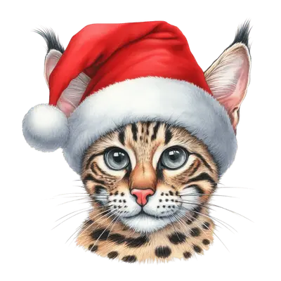 Cute Christmas Cat DTF Transfer | Santa Hat Bengal Kitten Design