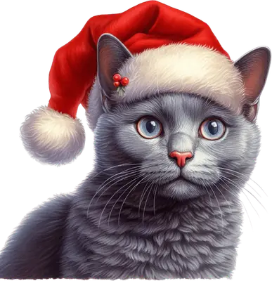 Cute Christmas Cat DTF Transfer | Santa Hat Grey Kitten