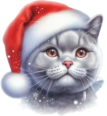 Cute Christmas Cat DTF Transfer - Santa Hat Kitten Design