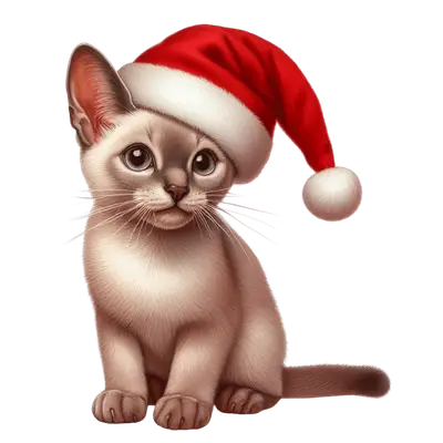 Cute Christmas Cat DTF Transfer - Santa Hat Kitten Design
