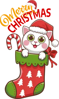 Cute Christmas Cat in Stocking DTF Transfer - Merry Christmas Design