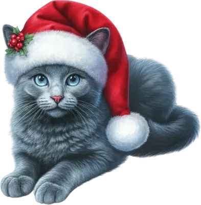 Cute Christmas Cat with Santa Hat DTF Transfer - Ready to Press