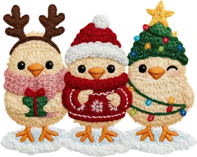 Cute Christmas Chicks DTF Transfer - Festive Holiday Crocheted Animal Design