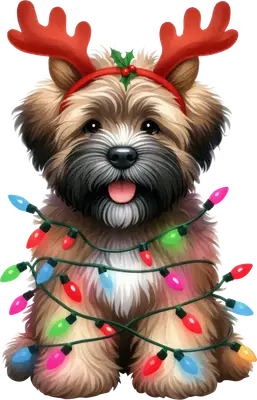 Cute Christmas Dog DTF Transfer | Reindeer Antlers & Lights