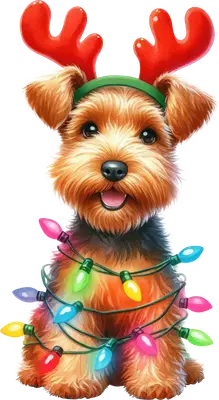 Cute Christmas Dog DTF Transfer | Reindeer Antlers & Lights