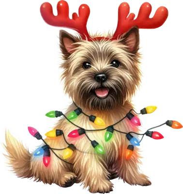 Cute Christmas Dog DTF Transfer | Reindeer Antlers & Lights Puppy