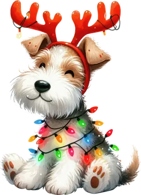 Cute Christmas Dog DTF Transfer | Reindeer Antlers & Lights Puppy Design