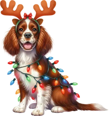 Cute Christmas Dog DTF Transfer | Reindeer Antlers & Lights Spaniel