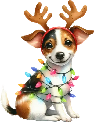Cute Christmas Dog Reindeer Antlers & Lights DTF Transfer
