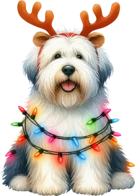 Cute Christmas Dog with Reindeer Antlers & Lights DTF Transfer
