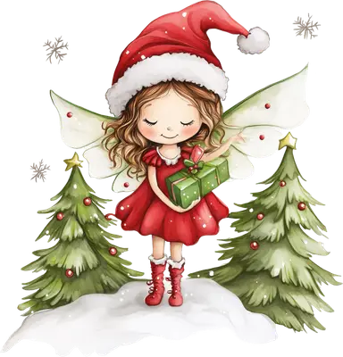Cute Christmas Fairy DTF Transfer | Santa Hat & Gift Box