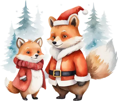 Cute Christmas Foxes DTF Transfer | Santa Fox & Pup Winter Design