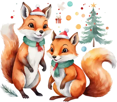 Cute Christmas Foxes DTF Transfer | Santa Hats & Scarves