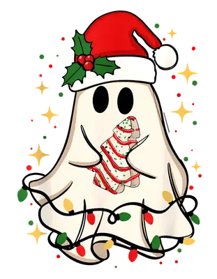 Cute Christmas Ghost DTF Transfer with Cookie & Santa Hat