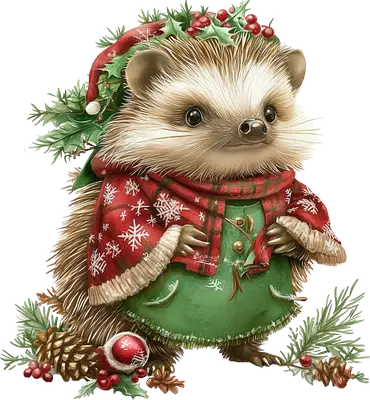 Cute Christmas Hedgehog DTF Transfer - Festive Holiday Apparel