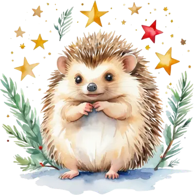 Cute Christmas Hedgehog DTF Transfer - Watercolor Winter Animal