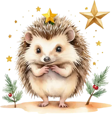 Cute Christmas Hedgehog Watercolor DTF Transfer with Stars