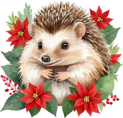 Cute Christmas Hedgehog with Poinsettias DTF Transfer