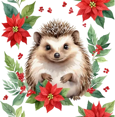 Cute Christmas Hedgehog with Poinsettias DTF Transfer