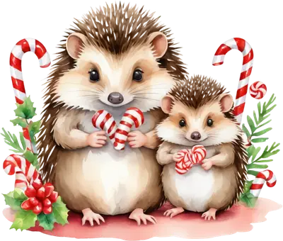 Cute Christmas Hedgehogs Candy Cane DTF Transfer