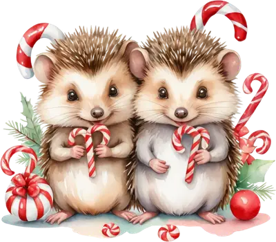 Cute Christmas Hedgehogs DTF Transfer | Holiday Candy Cane Iron On Design