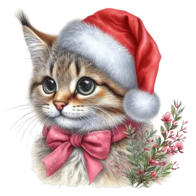 Cute Christmas Kitten DTF Transfer - Santa Hat & Pink Bow