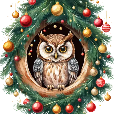 Cute Christmas Owl in Festive Wreath DTF Transfer