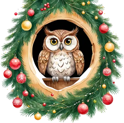Cute Christmas Owl in Wreath DTF Transfer | Holiday Apparel Design