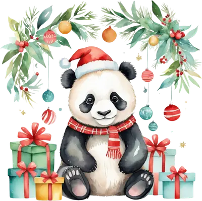 Cute Christmas Panda DTF Transfer with Santa Hat & Gifts