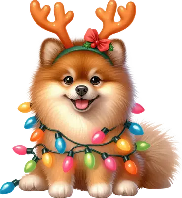 Cute Christmas Pomeranian Reindeer Antlers & Lights DTF Transfer