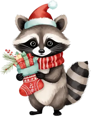Cute Christmas Raccoon DTF Transfer with Stocking & Gifts