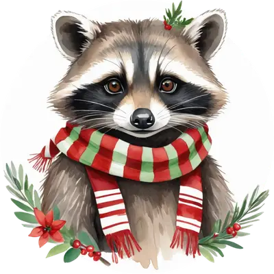 Cute Christmas Raccoon Scarf DTF Transfer | Festive Animal Design
