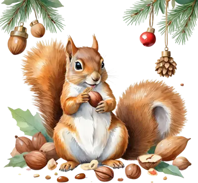 Cute Christmas Squirrel with Nuts DTF Transfer | Holiday Acorn Watercolor Design