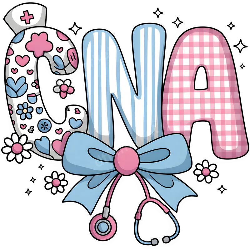See allThis charming DTF transfer proudly displays "CNA" in a delightful, whimsical style perfect for any Certified Nursing Assistant. The 'C' is adorned with cute hearts and flowers, topped with a sweet nurse's cap, while the 'N' features classic blue stripes and the 'A' sports a cheerful pink gingham pattern. Completing the design is an adorable light blue bow with a pink stethoscope, adding a touch of healthcare flair. This ready to press design is vibrant, professional, and full of personality. This cute CNA design is ideal for nursing students, new graduates, seasoned Certified Nursing Assistants, and anyone proud of their healthcare role. It makes a thoughtful and unique gift for Nurses Week, graduation ceremonies, birthdays, or just to show appreciation for their dedication. Perfect for creating custom apparel for teams or personalizing items to wear to work or casual outings. Our direct to film heat transfer makes personalization a breeze! This iron on transfer works beautifully on a wide variety of materials, including cotton, polyester, and most fabric blends. For best results, apply with a heat press at 300-325°F for 15 seconds with medium pressure, then cold peel. For smaller projects or home use, a household iron can also be used following specific instructions. Enjoy the convenience of a ready to press transfer with no tedious weeding required. Experience premium quality with this professional-grade apparel transfer. Our DTF transfers are known for their incredibly vibrant colors, exceptional durability, and soft-to-the-touch feel, ensuring your design looks fantastic and lasts through countless washes. Each heat press design is printed on high-quality DTF film with a strong adhesive, providing excellent stretch and crack resistance. Create custom shirts and accessories that stand out and celebrate the vital work of CNAs with confidence.